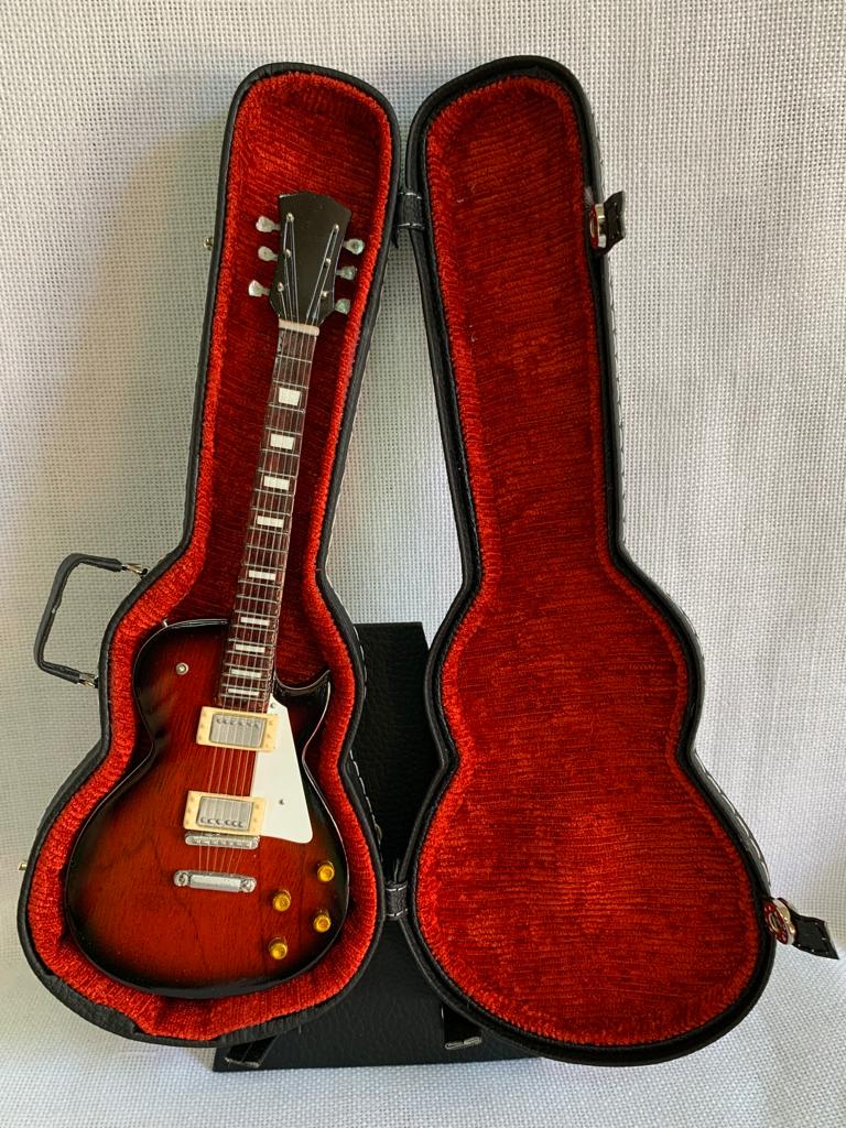 Guitarra con soporte, Guitarra con estuche azul y soporte, Guitarra con estuche rojo y soporte