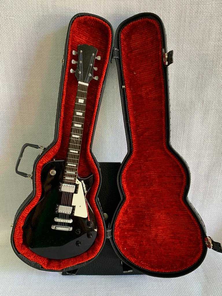 Guitarra con soporte, Guitarra con estuche azul y soporte, Guitarra con estuche rojo y soporte