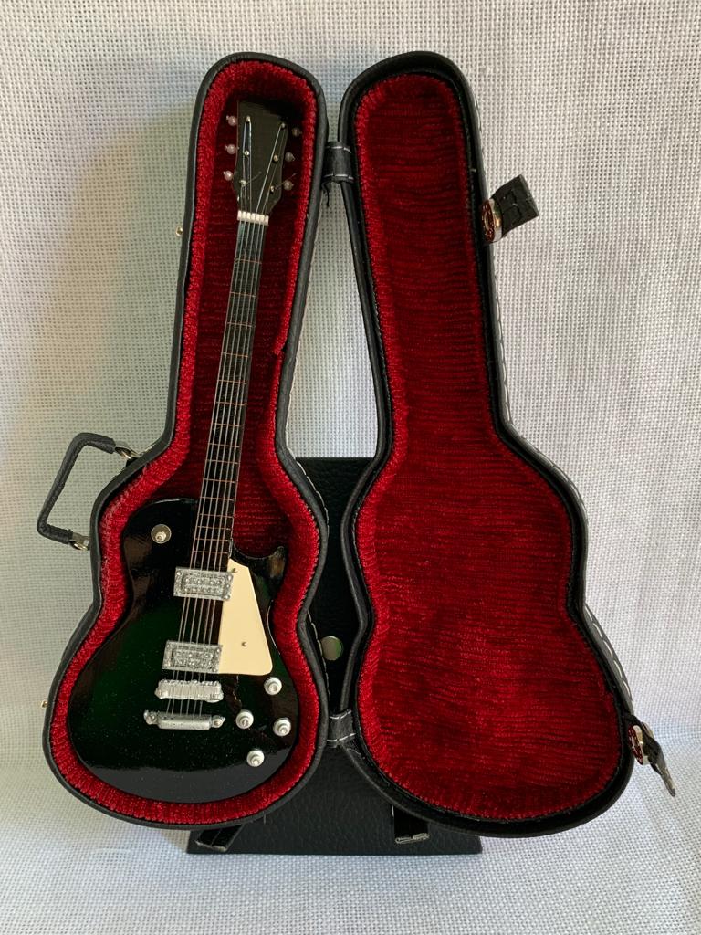 Guitarra con soporte, Guitarra con estuche azul y soporte, Guitarra con estuche rojo y soporte