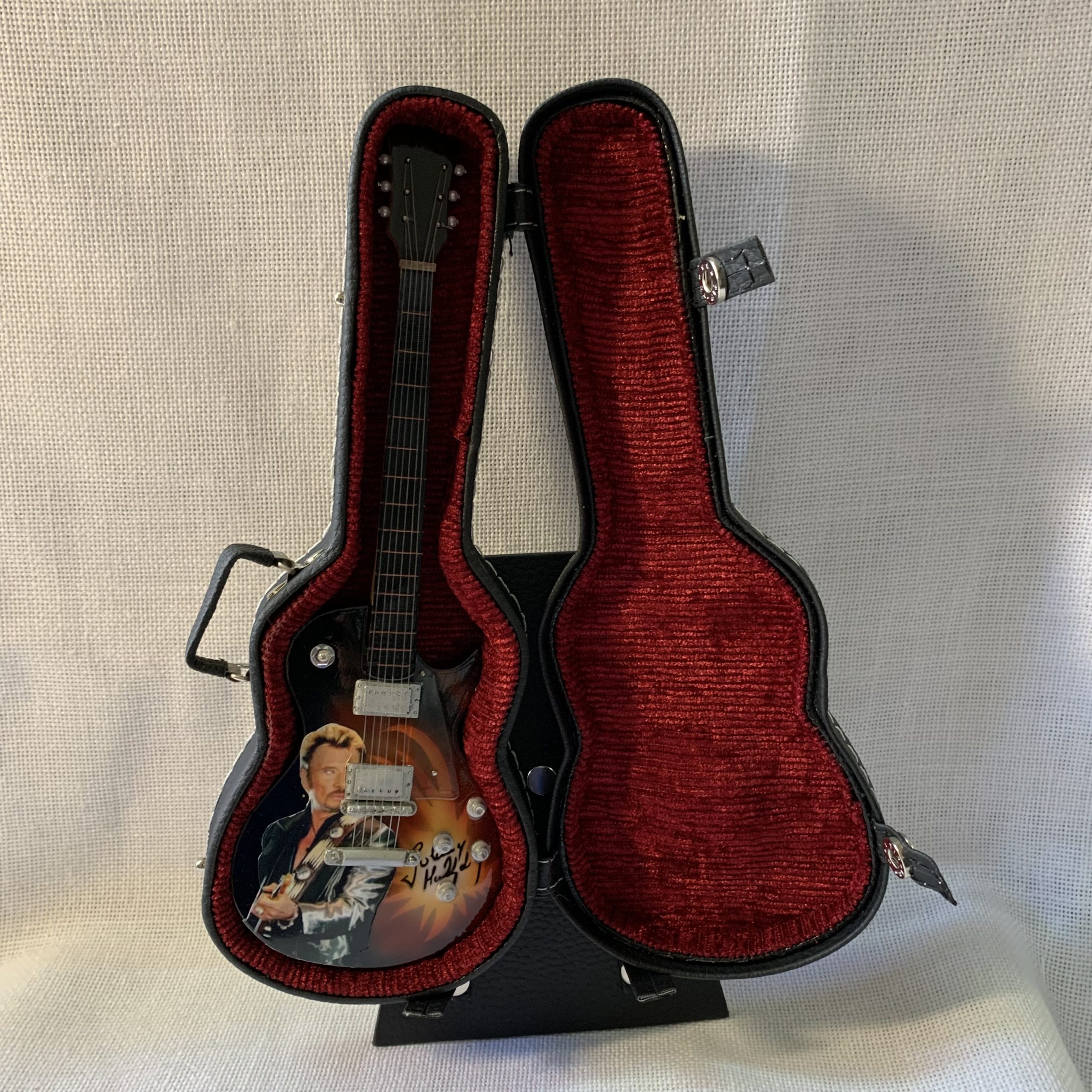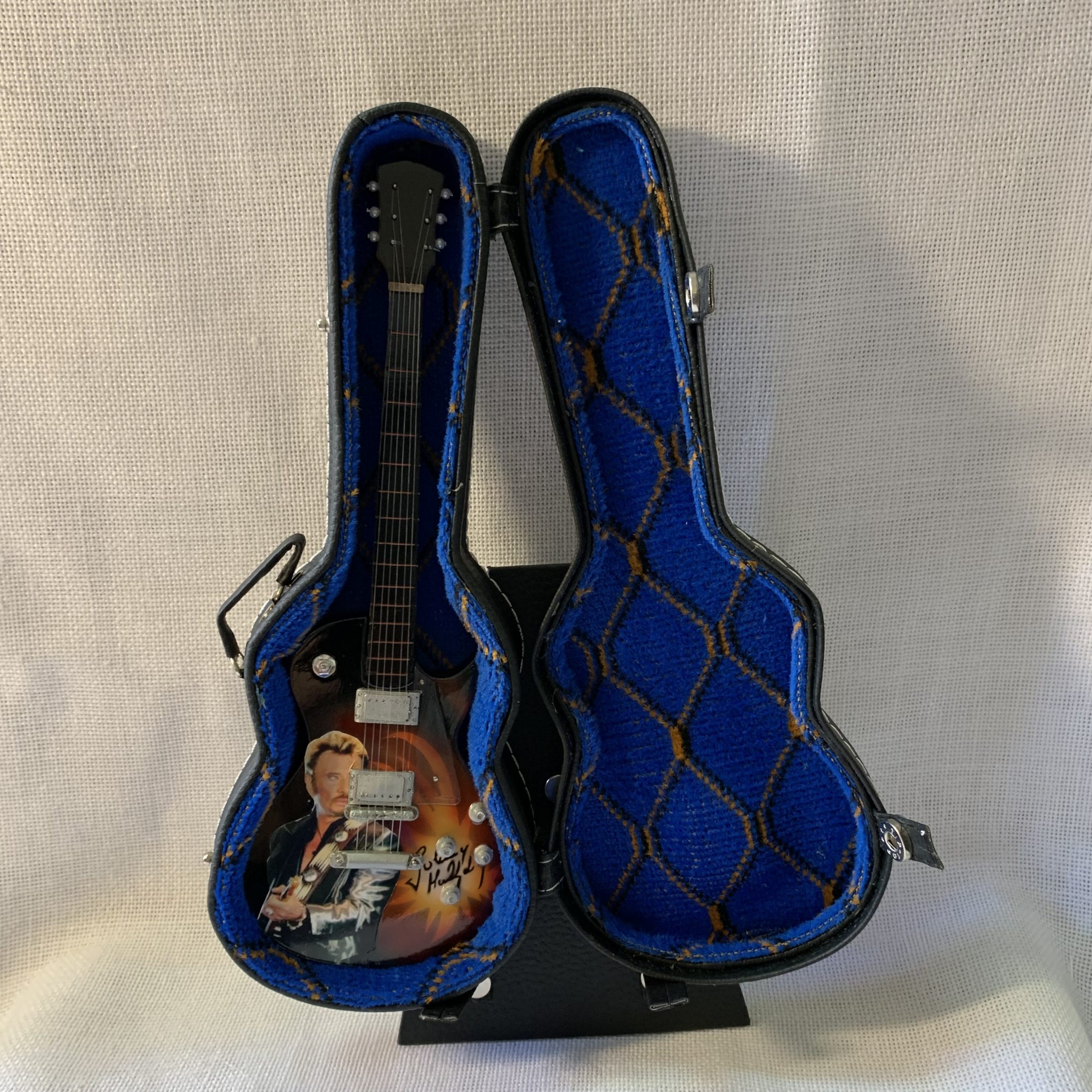Guitarra con soporte, Guitarra con estuche azul y soporte, Guitarra con estuche rojo y soporte